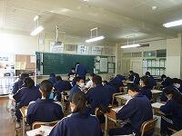 11月17日(火)火曜日の1校時は全学年が道徳を行っています。本日は1年生は規律ある社会の実現をテーマに「淳の住む町」を題材に、2年生は社会連帯の在り方をテーマに「加山さんの願い」を題材に授業が行われ、活発な意見交換等がされていました。3年生は前月の修学旅行での学習を受け、安全に配慮し、将来に備えるをテーマに「稲むらの火と堤防」を題材に東日本大震災の津波の被害について考えたことをもとに安全を心掛けて生活することを意識して授業に取り組んでいました。