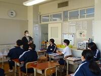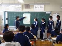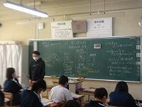 11月18日(水)千葉県立馬橋高等学校英語科の鵜野沢教諭が異校種体験として来校されました。2年生の英語の授業に参加している様子です。英語で鵜野沢先生に質問をして英語で回答してもらっているところです。一日、中学校の学習や生活を体験される予定です。