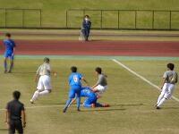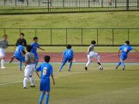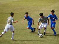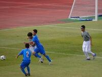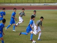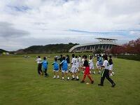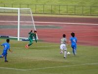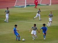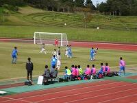 前半、麦島選手が先制し、その後、相手チームの直接フリーキックから失点し、1対1で折り返しました。後半、苦しい試合展開の中、終了間際のコーナーキックから前田選手が得点し、2対1で勝ちました。明日は東総運動場で試合を行うためマイクロバスで移動します。ご協力よろしくお願いいたします。