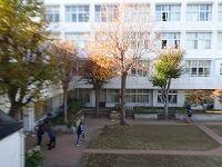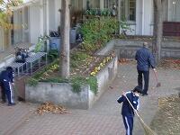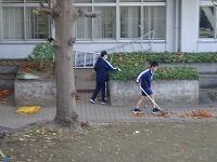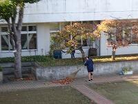 11月11日(水)中庭の清掃の様子です。落ち葉の季節となりました。校舎内外を手分けして落ち葉清掃をしても追いつかない毎日です。だんだん冷えてきたことを感じるようになりました。それでもハーフパンツやワイシャツ姿で頑張っている生徒もいます。