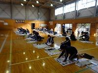 12月17日(木)創心館の床補修が終了しましたので2年生の書道の授業が行われていました。2・3校時の様子です。2年生の書初めは「新年の計画」です。書き終えた後に作品を見ながらどんな新年の計画を描いているのでしょうか。学校の中心となった2年生の新年での活躍を期待します。
