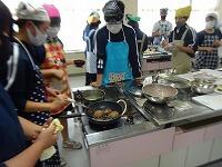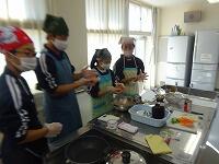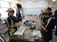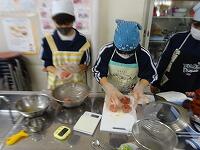 12月1日(火)1階の廊下に美味しそうにおいが広がっていました。調理室で2年生の調理実習が久しぶりに行われていてどの班も上手にハンバーグを調理していました。朝一番からエプロンを着て気合の入っていた生徒もいて大変楽しく実習していました。