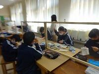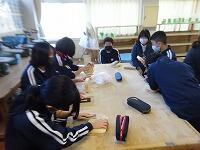 12月7日(月)後期が家庭科となった1年生はトートバックを製作します。その過程の一つとして本日はまつり縫いのテストが行われていました。どの生徒も真剣な表情で作業に集中していました。2年生で後期が技術科になるとスタンド製作となります。まず木製の部分の作業から組み立てが始まっていました。