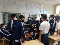 12月9日(水)6校時は学級活動です。3年生では実力テストの返却と個人面談が行われていました。いよいよ進路本番が近づいています。2年生は学級会を行っていました。学期の反省や学期末の学年レクのチーム分け等、クラスで様々な話し合い等が行われていました。1年生は体育館で林間学校の予察報告集会がありました。来年6月を楽しみに熱心に映像を見て、内容の説明を聞いていました。