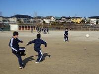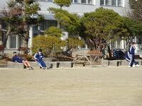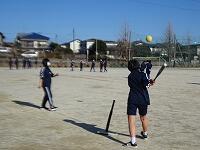 1月29日(金)天気は良くなりましたが、風が強い日です。それでも昼休みや体育の時間は元気にグラウンドで過ごしていました。今日の2年生の体育の様子です。壇上の種目が入れ替わり男子がバスケットボール、女子がソフトボールになりました。今日は男子は体育館でボール回しやドリブル等ボールの扱いについて、女子はグラウンドでグローブの使い方とハンドボールを使ってのバッティングを学習していました。