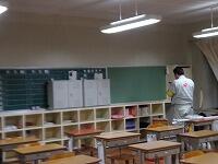 1月26日(火)夜間ですが、3年生の教室でタブレット導入のための充電ボックス設置工事が行われています。昼間は授業がありますので夜間の工事となっています。