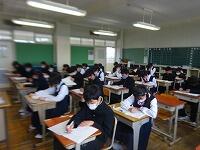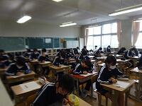 4月13日(火)本日は全学年一日かけて柏市学力・学習状況調査を実施しています。1年生にとっては中学校での初のテストとなりました。校内テストの約束の説明を受けてから取り組んでいる1年生全クラスの様子です。本校ではテストは原則、制服で行うようにしています。明日は、一年生はスポーツテストがあります。全学年で証明写真撮影を行う予定です。