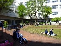 4月15日(木)よい天気になりました。1年生では午前中を使って「絵を描く会」を行っています。各クラス各班で思い思いの場所に広がって写生を行っている様子です。入学式から緊張した毎日が生徒も教員も続きましたので、のんびりした雰囲気の中で活動できていると感じます。どんな作品が仕上がるのか掲示されるのが楽しみです。