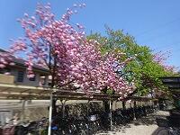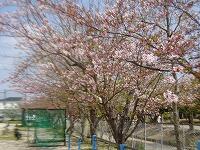 4月9日(金)良い天気です。全学年がそろいました。校舎裏手の駐輪場付近では八重桜が満開です。校内では3年生の発育測定が体育館で、聴力検査が図書室で行われていました。本日から給食開始、避難訓練も行われます。