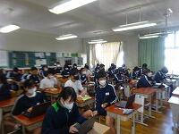 1年生はキャリア教育の一環として昨日は集会で「働くとは」という内容で学習したことを受けて本日は企業などについて具体的に調べる学習の取り組んでいました。