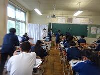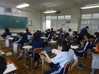 1年生の社会の授業で都道府県についての小テストが行われています。