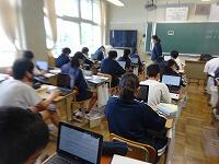 6月3日(木)最近のタブレットを活用した授業の紹介です。上の2枚は2年生の地理の授業で「日本の国土」について学習する中で災害について調べているところです。下の2枚の写真は1年生の理科の授業でタブレット活用して「脊椎動物の分類」を行っているところです。授業の中で時間は短くてもタブレットの活用の機会が増えています。調べたり、調べた内容を整理する作業もスムーズになってきています。