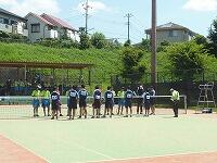7月22日海の日 富勢庭球場で総合体育大会男子テニス団体戦の試合が行われました。本校の男子チームは田中・椎橋ペアー、鈴木大・鈴木悠ペアー、野藤・松本ペアーの3ペアーが出場し、中原中と対戦しました。1対2で惜敗しましたが、1時間以上にわたる熱戦を展開し、持てる力を大いに発揮した試合になりました。控えのメンバーも応援や審判を頑張り、男子テニスの総合体育大会が終了しました。出場できた2年生はこの経験を新人戦に活かしてほしいと思います。選手の送迎や記録等にご協力いただきありがとうございました。