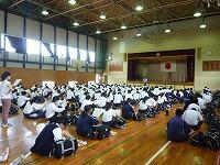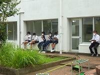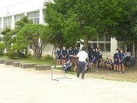7月12日(月)土日に続いて暑い日となりました。2年生の男子は水泳の授業に気持ちよさそうに取り組んでいました。2年生女子は木陰にはいってハードルの説明を聞いてから実際に練習に取り組んでいました。日焼けを避けるためジャージで参加している生徒もいました。梅雨明け間近となってきましたが、天気の急変も心配です。今日は部活動休養日のため完全下校14:45で一斉下校の予定です。
