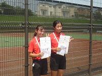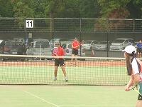 7月11日(日)富勢庭球場で総合体育大会女子テニス個人戦の2日目が行われました。残った選手は実力者ばかりですから1ゲームを争う接戦が暑いコートで繰り広げられました。準決勝・決勝は女子・男子部員が全員で応援する中、春の決勝で敗れた相手に見事に勝ち、小暮・渡会ペアーが優勝して県大会出場が決まりました。千葉・戸張ペアーがベスト32、松本・藤本ペアーがベスト16と健闘して女子の個人戦は終了し、次回は18日(日)の団体戦です。本日も選手の送迎・記録等にご協力いただきありがとうございました。次回もよろしくお願いいたします。