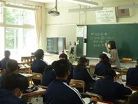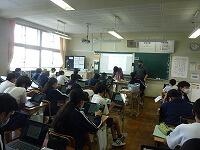 7月14日(水)天気が不安定な様子ですが、本日も平常授業が行われています。学期末で残り授業も少なくなり、夏休みの宿題についての説明や実際に宿題に取り組む授業も見られます。2年理科では図書室で自由研究のテーマ探しを行っていました。2年英語ではタブレットでALTのシルバ先生が作成した学習シートが紹介されていました。1年国語では課題作文について説明があり、下書きを始めている生徒もいました。2年社会でも夏休みの課題レポートの説明が配付され、紙又はタブレットでレポートを作成してよいことが連絡されたいました。
