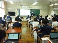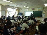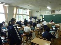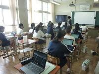 7月13日(火)蒸し暑い日ですが、生徒は1校時より授業にしっかり取り組んでいました。2年生の英語の授業では「mustとhave to」についてタブレットを活用して授業が進められていました。2年生の理科では夏休みの自由研究についてのタブレットで調べものをしていました。レポートも紙だけでなくタブレットで作成することも可とされていました。夏休みの課題もペーパレス化が始まっています。