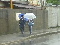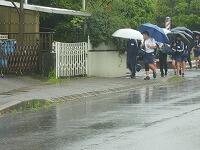 7月5日(月)本日は部活動休養日で一斉下校する様子です。降ったりやんだりの雨天です。自分達の判断で体操服・ジャージでの下校をしています。制服で下校する生徒もいます。明日も各自の判断で登下校すると思います。