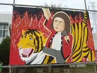 10月15日(金)体育祭の各色の応援看板(美術部の製作)とリモート開会式の様子です。開会式は体育館で3年実行委員会の司会・進行のもと競技上の諸注意や実行委員長の話、応援団長による選手宣誓等を行い、各クラスにリモートで配信しました。