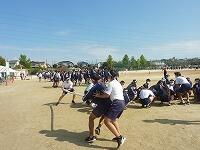10月15日(金)体育祭は1年生から始まりました。学年開会式、合同体操後にまず台風の目を練習の成果を発揮して頑張りました。5組が1位でした。次に学級対抗リレーです。全員がクラスメートの応援を背に全力で走りました。3組が1位でした。次が2年生になります。