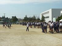 10月15日(金)体育祭の2番手の登場は2年生です。学年開会式と合同体操を終えて台風の目となりました。2年生もクラス一丸となって取り組みました。1位は4組でした。学級対抗リレーもかなり力が入ったレースが展開され、4組が続けて1位となりました。最後の学年閉会式で得点の発表がありました。1年と2年の合計点が紅白とも210点で同点ということがわかり、次の3年生に総合優勝がゆだねられました。