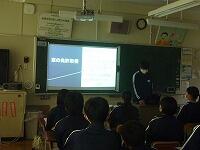 10月19日(火)3年生の技術の授業で「将来の夢」について発表している様子です。1学期から取り組んでいきたプレゼンのためのスライドづくりが終了し、最後に各自で発表することになりました。スライドには図やイラスト、アニメーション等が工夫されており、見やすくわかりやすスライドが作られていました。人の発表を聞くことで他の職業や目標等を知ることも今後の進路選択にとってとても参考になっているようでした。