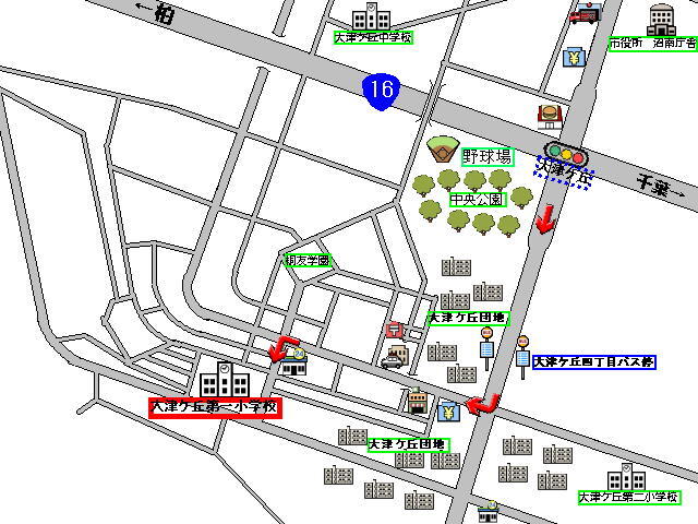 国道16号線の大津ケ丘交差点を曲がっていただき、一つ目の信号を右折。左手にコンビニエンスストア(ローソン)がある交差点を左折してください