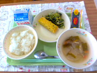 今日は昼休みに縄跳び検定があるので,たくさん食べて良い記録がだせるようにしたいです。(前村長マン、菜の花)