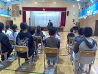 1〜4年生がいない卒業式で、5年生が在校生代表として、6年生が中学校でも頑張れるように応援するので、