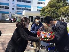 毎日,春を先取りしたような気候となっています。校長室の前に立っている木蓮の花が満開です。1年生が植えた球根も花が咲き,学校の花壇の花と共に彩りを添えてくれています。卒業式を前にチューリップも開いてきました。