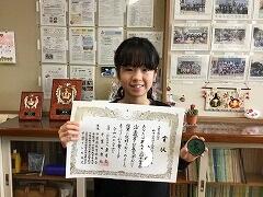今日は,6年生で千葉県書き初め展で千葉日報社賞をいただいた児童を紹介します。