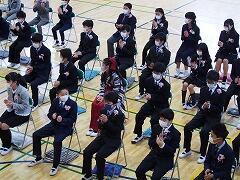 校長からは,2つの話をしました。1つ目は,「感染症にかからない,うつさない」ために,手洗いうがいをきちんと行い,咳エチケットを守りましょう,という話です。2つ目は,地域や外部の講師からのうれしい意見をいただいたことについて話しました。「大津一小の子どもたちは,話を聞く態度がとてもよく,言葉の返し方や耳を傾ける姿が素晴らしい」とほめられることがとても多いのです。特に6年生の態度がとても立派です。これを1~5年生が引き継いでくれることを願っています。