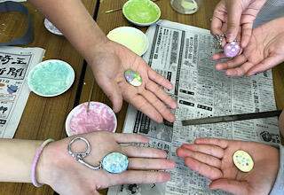 世界に一つの作品。キーホルダーにつけて完成です。おみやげに持って帰ります。