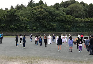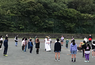 さわやかな風が吹く中、校外学習の出発の会を行いました。