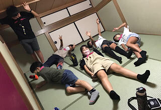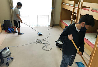 林間学校2日めです。朝、鳥の声で目覚め、部屋を掃除したり、片付けたりして、2日めの活動に入りました。