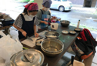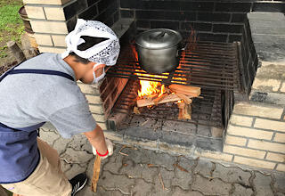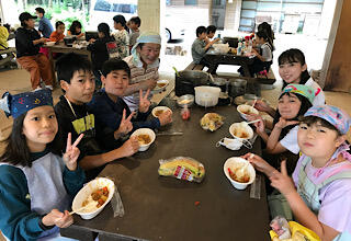 全員元気です。朝ご飯を食べたら、すぐにお昼のカレーづくりです。自分でご飯を作るって大変です。