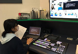 カメラ担当、カメラの切り替え担当、BGM担当、録画担当、フロアディレクター、プロンプターというセリフを提示する係、そしてキャスターとゲストなどの分担に分かれて、やり方を教えてもらいました。