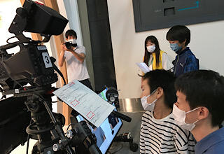 1組の映像制作体験の様子です。みんな緊張しながら、自分の力を発揮しようと頑張っています。