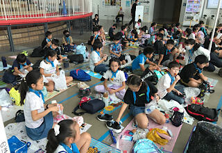 小雨が降っていたので、体育館で、実行委員を中心に出発の会を行いました。