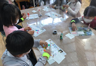 上手に模様を形にする人、イメージに合わせて好きなように色をのせる人、それぞれのオリジナリティーで作品を作っています。