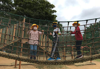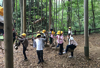 午後はアスレチックで遊びます。雨が心配です。。。