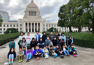 国会をバックに記念撮影です。