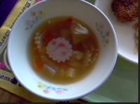 今日は実は汁物になるとが入っていて、そのなるとの模様に、富士山と日の丸の絵が書かれています!ヮ(゚д゚)ォ!