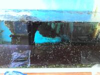 最初はキレイな水でしたが夏休みが明けて見てみるとモがたくさんあって汚くなっていました。