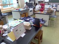 今日は、夏休み中に児童達が作った自由研究の作品を理科室に置きに来ました。
