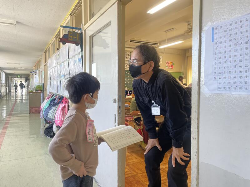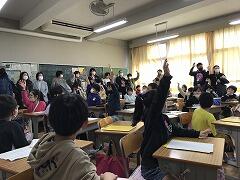 子どもたちは、学校や先生の仕事に興味を持って質問を考え、あいさつの練習を教室で