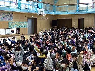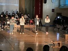 児童会主催の「卒業を祝う会」を行いました。6年生を招待し、下級生から6年生への感謝のメッセージや卒業をお祝いする気持ちを届けます。各学年、趣向を凝らし、たくさんの思いの詰まったパフォーマンスで、6年生をお祝いしました。