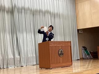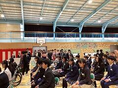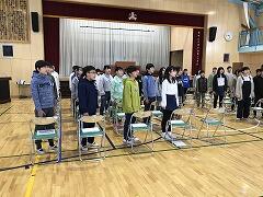本日24日は修了式でした。体育館での修了式では、校長先生から「1年間頑張った自分をほめ、次の学年にステップアップしましょう。」という話と「1年間お世話になった人に感謝しましょう。」という話がありました。生徒指導の先生からは、春休みの安全の過ごし方について話がありました。