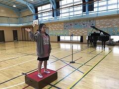 まずは、4年生の発表です。6年生の「すごいワザ」をたたえながら勝負を挑みましたが、なわとびもクイズもなかなか勝てませんでした。