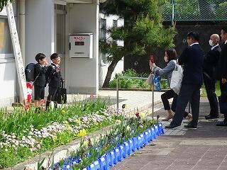 春は別れと出会いの季節。それぞれが新しい環境で精いっぱい頑張っていくのを校庭の花々が見守るように美しく咲いています。